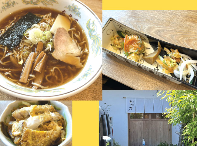 「お好み膳」は、ラーメンまたは蕎麦とご飯もののお得なセット。前菜5種盛りと天丼/かつ丼/親子丼に、デザートとしてお汁粉が付きます。
